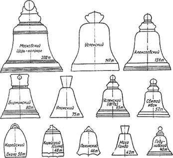 Рис. 155. Колокола-гиганты, отлитые в разных странах